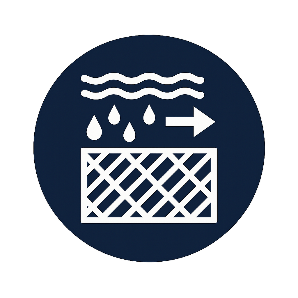 CeLPad ได้รับการออกแบบให้สามารถกระจายน้ำไปทั่วทุกพื้นผิว ได้อย่างรวดเร็วและสม่ำเสมอ การออกแบบร่องอากาศที่มีความลาดเอียงจะช่วยให้น้ำส่วนที่เหลือจากกระบวนการระเหย ไหลลงมาชำระล้างฝุ่น และสิ่งสกปรกออกจากพื้นผิวของ CeLPad จึงช่วยเพิ่มประสิทธิภาพในการกรองฝุ่นละอองที่ปะปนมากับอากาศภายนอกได้เป็นอย่างดี